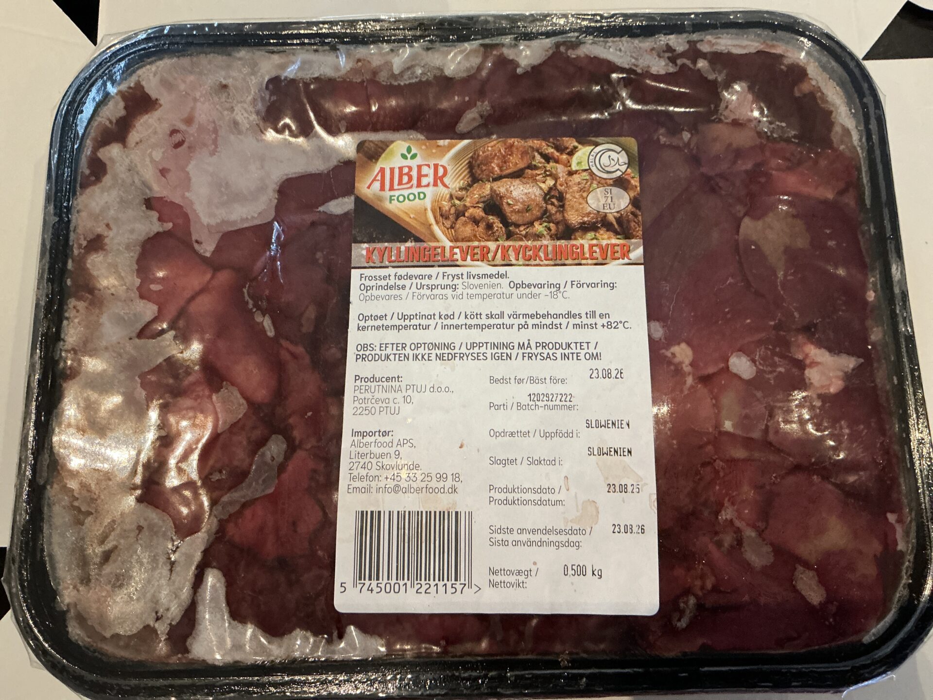 Dansk: Frossen kyllingelever fra Alber Food er ren og naturlig lever, skånsomt frosset for at bevare friskhed, smag og næringsværdi – perfekt til patéer, gryderetter, saucer og klassiske retter med rig umamismag. Ingredienser: 100 % kyllingelever (rå) – ingen tilsatte konserveringsmidler eller kunstige smagsstoffer; kun lever leveret og frosset under kontrollerede forhold for god kvalitet. Næringsindhold pr. 100 g: ca. 116 kcal energi, 4,2 g fedt (1,2 g mættet), 5 g kulhydrater (0 g sukker), 19 g protein og ca. 0,17 g salt – leverer en god proteinkilde med lavt fedtindhold og naturlige vitaminer/mineraler som A‑ og B‑vitaminer samt jern. Dette gør produktet til en alsidig og ernæringsrig ingrediens i det daglige køkken.