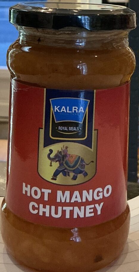 Kalra Hot Mango Chutney er en sød og krydret indisk sauce lavet af modne mangoer blandet med sukker, eddike og aromatiske krydderier. Den har en fyldig, syrlig smag med en mild styrke og bruges ofte som dip eller tilbehør til snacks, karryretter og grillede retter. Typiske ingredienser inkluderer mangopuré, sukker, eddike, salt, chili, ingefær og krydderier. Ernæringsmæssigt indeholder en portion på 100 g cirka 200–240 kcal, 50–55 g kulhydrater (primært sukker), mindre end 1 g protein, mindre end 1 g fedt og små mængder kostfibre.