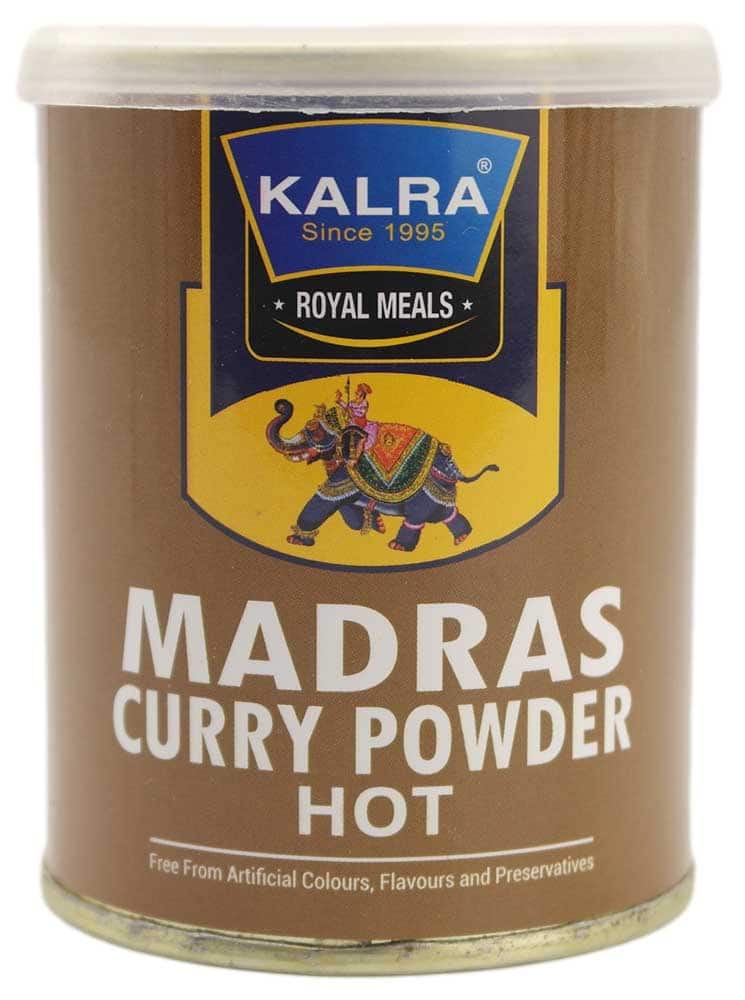 Madras Curry Powder hot 100 g is a premium hot Madras curry spice blend that adds bold heat and authentic South Indian flavour to curries, stews, marinades, soups and rice dishes. Made from a carefully balanced mix of traditional spices like coriander, turmeric, chilli, mustard, cumin, garlic, black pepper, fenugreek and fennel seed, it delivers vibrant aroma and rich taste with every dish you cook. Typical Nutrition (per 100 g): ~300 kcal energy, ~12 g fat, ~49 g carbohydrates, ~13 g protein and trace salt amounts (values may vary by brand). The hot spice mix enhances both vegetarian and meat recipes with consistent flavour and quality.