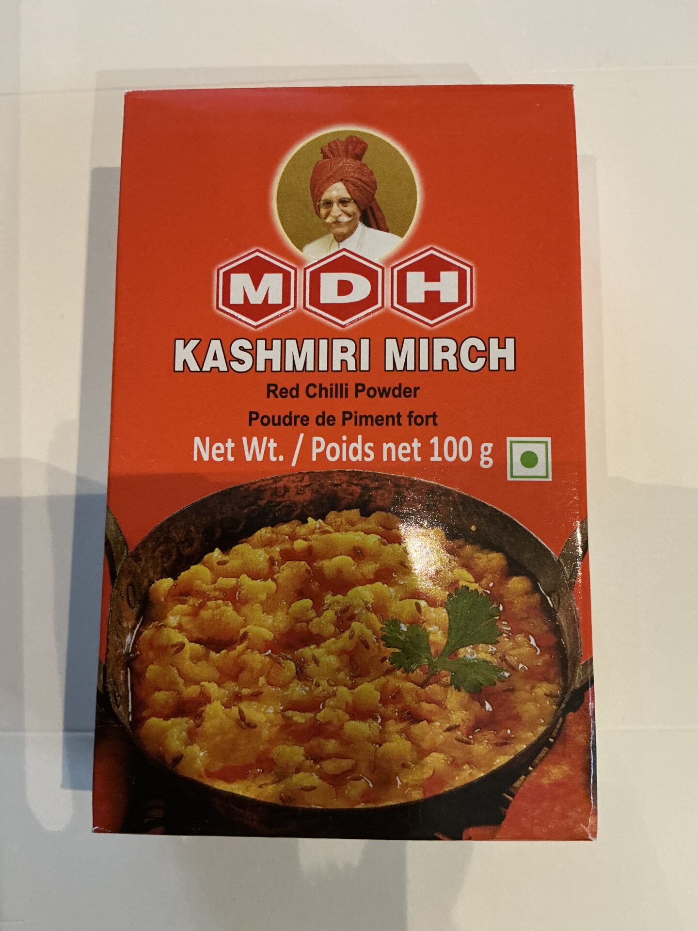 MDH Kashmiri Mirch Masala er et fintmalet chilipulver fremstillet af nøje udvalgte og soltørrede Kashmiri-chilier, som er kendt for deres milde styrke og intense naturlige røde farve. Chilierne renses, tørres og males skånsomt for at bevare aroma, farve og friskhed uden tilsatte kunstige farver. Ingredienser: 100 % Kashmiri rød chili. Næringsindhold pr. 100 g (ca.): Energi 320–350 kcal, Fedt 15–17 g, Kulhydrater 50–55 g (heraf sukker 7–10 g), Protein 12–14 g, Kostfibre 25–30 g, Salt <0,1 g. Ideel til karryretter, tandoori, marinader og saucer, hvor den giver en dyb rød farve og en mild, aromatisk varme med ensartet kvalitet.