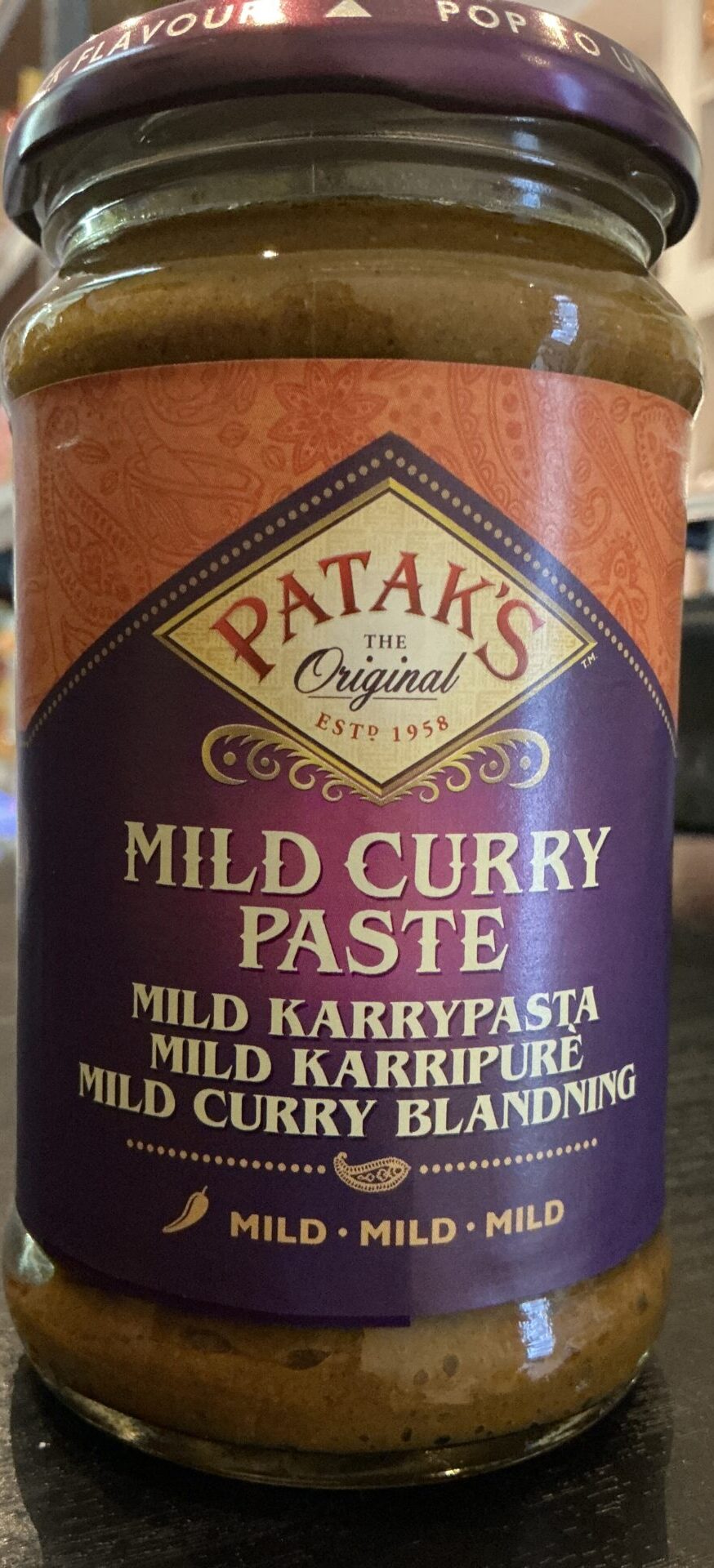 Patak’s Mild Curry Paste er en smagfuld og aromatisk madlavningspasta lavet af en velafbalanceret blanding af tomater, løg, hvidløg, ingefær, koriander, spidskommen, gurkemeje og traditionelle krydderier. Den er udviklet til at skabe lækre indisk-inspirerede karryretter med en mild styrke, hvilket gør den velegnet til hele familien. Fremstillet med kvalitetsingredienser og uden kunstige konserveringsmidler er den ideel til at tilberede kyllinge-, grøntsags-, linse- eller fiskekarry hurtigt og nemt. Pr. 100 g indeholder den cirka 110–130 kcal, 6–8 g fedt, 10–12 g kulhydrater og 2–3 g protein, hvilket giver en rig smag med en mild og afbalanceret styrke.